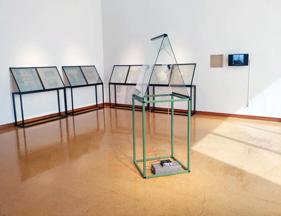 The glass speakers played a two-channel audio piece using excerpts of historical texts, sound, and original writing.